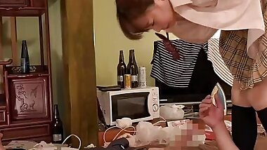 "Adorable Japanese Nurse Rubs Boyfriend's Hard Penis"