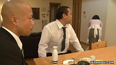 "Asian maid sucking him in front of his client "