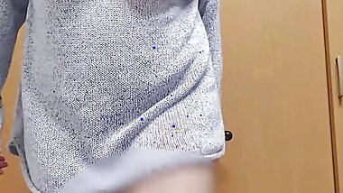 "A married woman masturbates with her legs spread in the changing room"