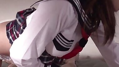 "Japanese schoolgirl playing with her pussy over panties"
