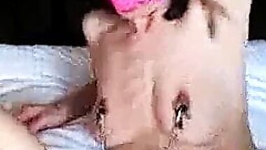 "Toy fucking the brunette milf then cumming all over her tits"