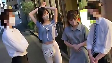 "Japanese age gap FFM pickup MILF and friend body check sex"