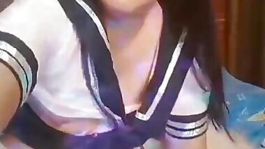 "Slender Japanese Girl Takes Off Her Uniform"
